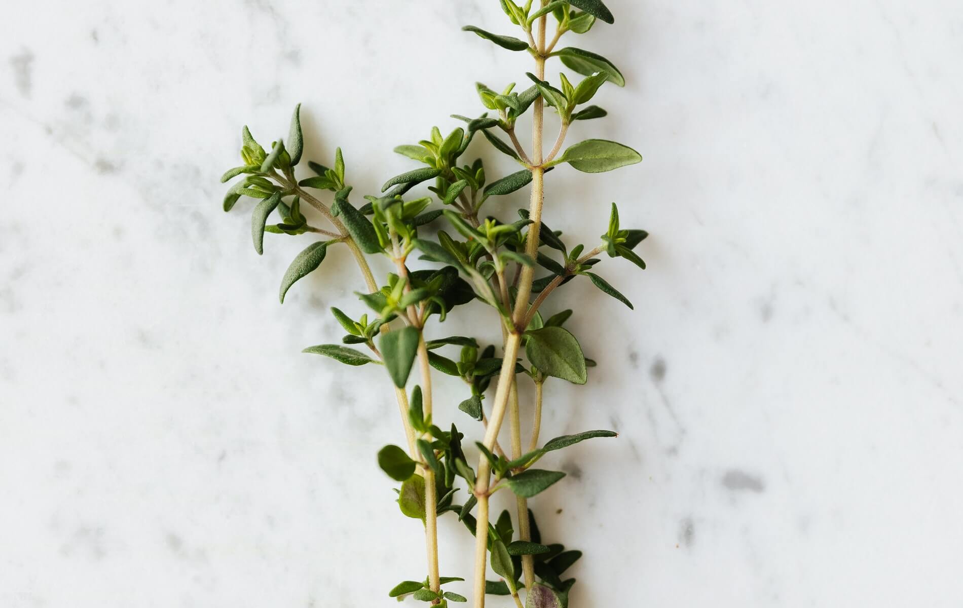 • Green bunch of thyme on white..