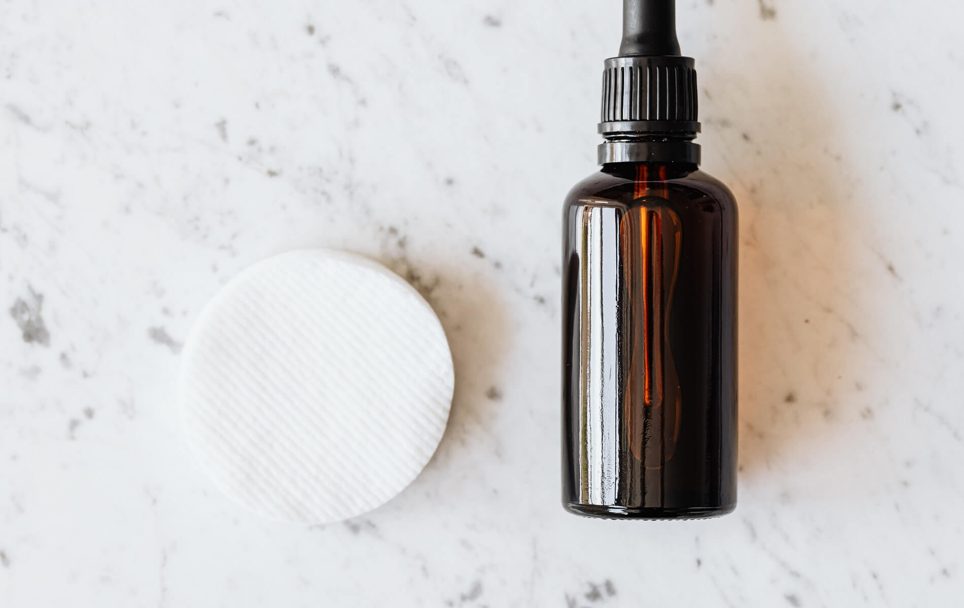 Cotton pad with flask of essential oil